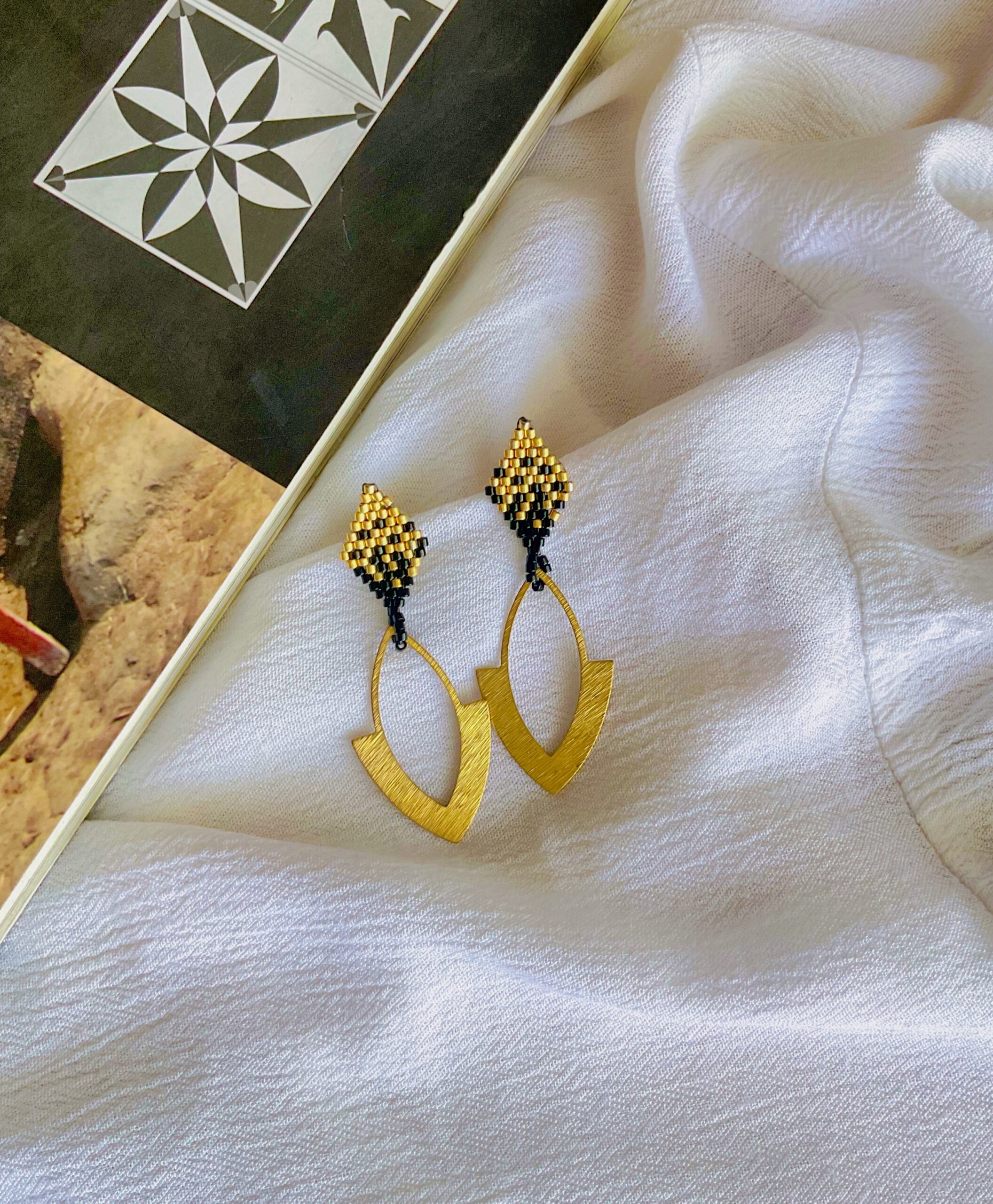 The earrings are a celebration of African-inspired design and modern elegance. Each pair is carefully handcrafted using high-quality Miyuki beads, known for their precision, rich colour, and durability. The beaded tops are paired with hand-cut brass charms, giving every piece a unique, artisanal finish.